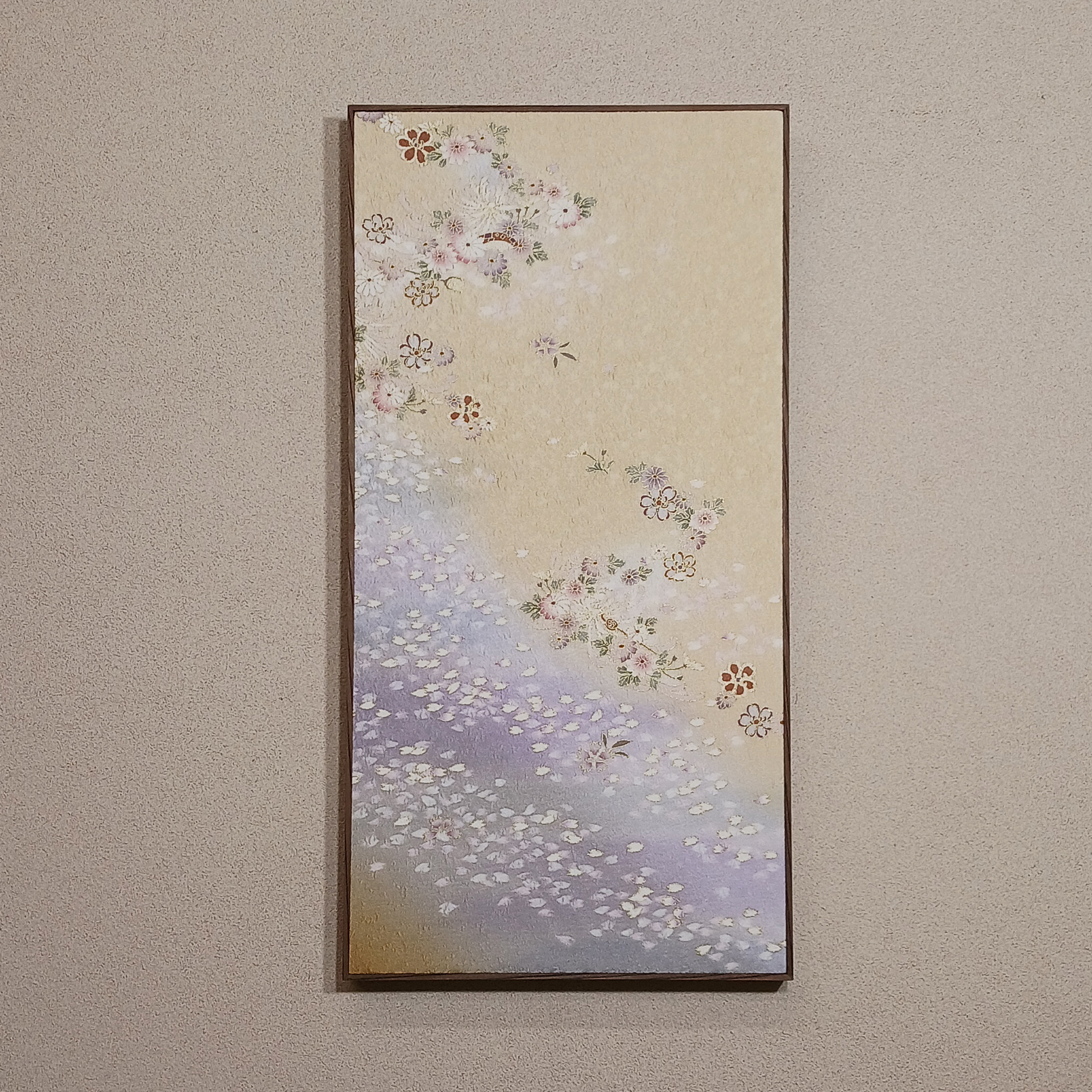 着物生地を木枠に張り込んだ手作業によるアートボード。