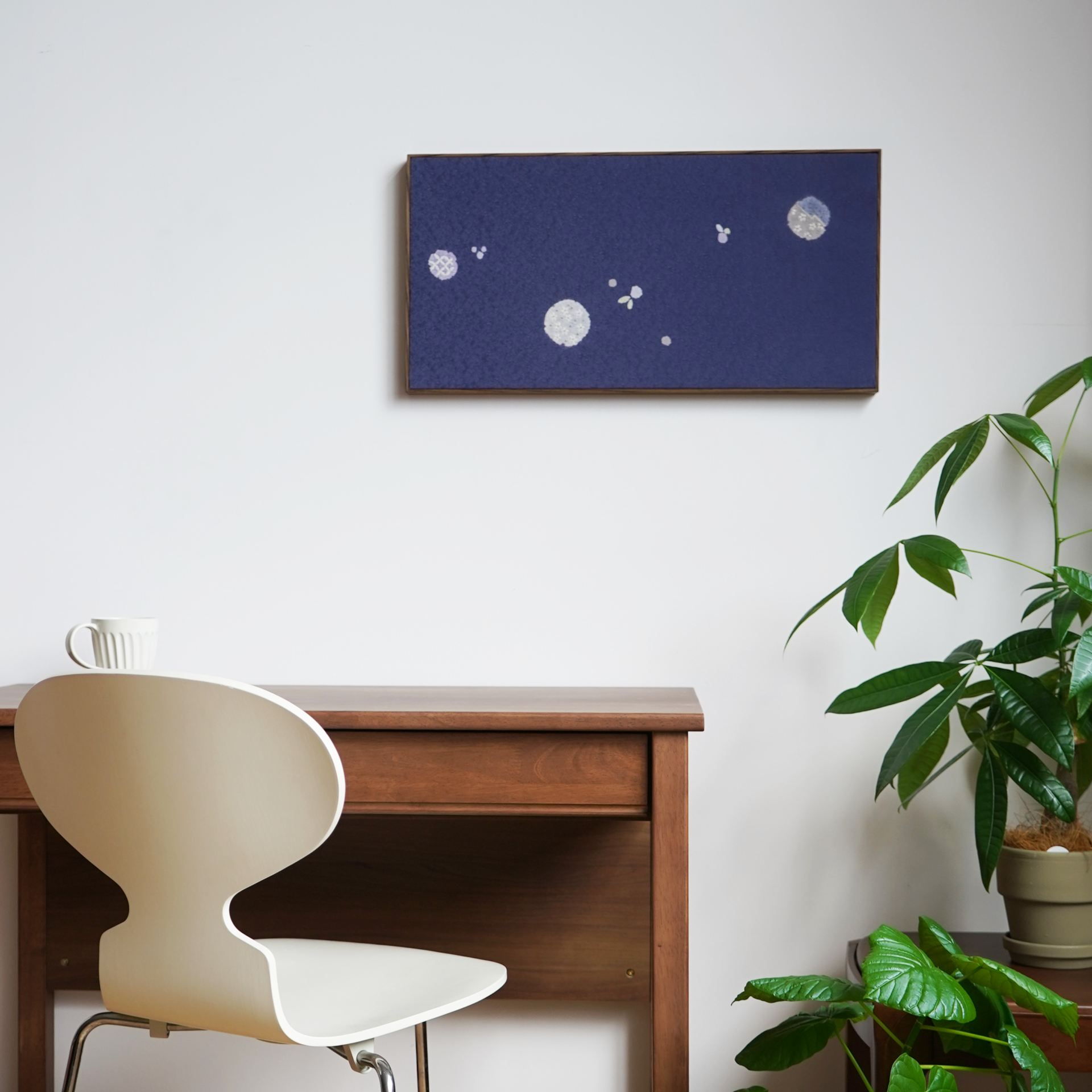 着物の意匠や技法をアートとして再構築しました。伝統美を現代空間で楽しめる、青柳ならではの新しい表現です。